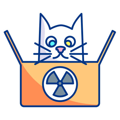 In the thought experiment, a cat is sealed in a box. Also inside this box is a radioactive particle that, if detected by a Geiger counter, will expose the cat to cyanide, killing it. However, we cannot see into the box to observe whether the cat is alive or dead. As a result, until it is observed, the cat is both alive and dead at the same time.